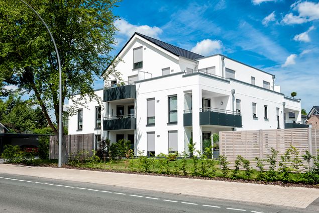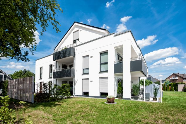 Dieses moderne Mehrfamilienhaus wird Ihnen sicher gefallen. Es ist mit acht individuellen Wohneinheiten geplant und verfügt über Vollkeller und PKWStellplätze. Das Grundstück befindet sich in Bünde-Ennigloh an der Holzhauser Straße (Eingangsseite) und einer kleinen Neubausiedlung am Gänsemarkt (Gartenseite) in einer sehr schönen und begehrten Wohngegend. Die einzelnen Wohnungen werden eine Größe von ca. 70–115 m² haben und über eine große Terrasse mit Garten bzw. im Ober- sowie im Dachgeschoss über einen großen Balkon verfügen. Besonders schön sind die zahlreichen bodentiefen Fenster, die viel Licht in die Wohnung lassen. Bäder und Gäste-WC werden gefliest, Parkett verlegt. Fußbodenheizungen mit Einzelraum-regelung sowie elektrische Rollläden gehören zur Standardausstattung jeder Wohnung. Jedem Eigentümer gehört ein separater Kellerraum. Ein ausreichend großer Waschkeller mit eigenen Anschlüssen für Trockner und Waschmaschine steht zur Nutzung zur Verfügung. Ebenfalls vorhanden sind ein Trocken- sowie Fahrradraum.